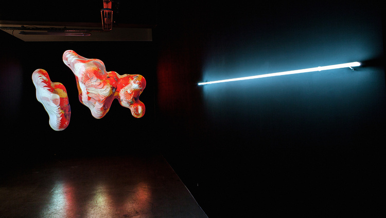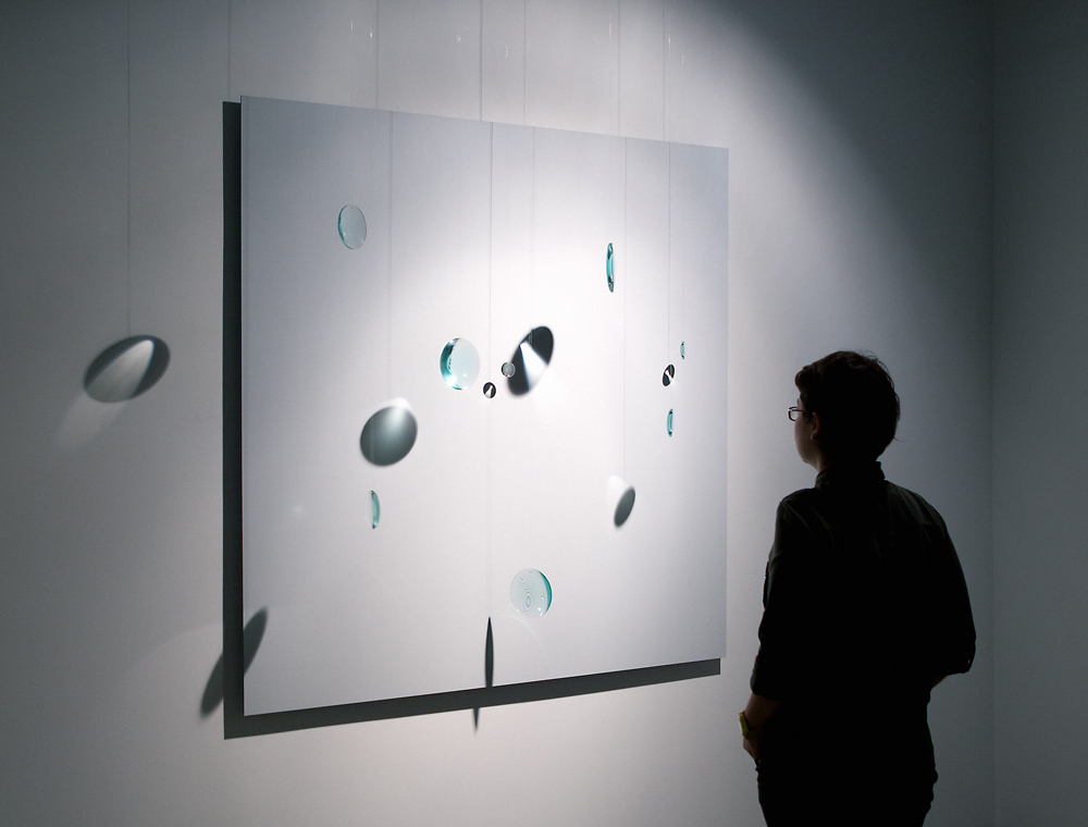 Candaş Şişman takes a non-conventional approach to the perception of time, space and movement of the viewer in these works through the use of utilizing digital and mechanical technologies. The artist who uses natural sciences as a reference point, aims to construct hybrid emotion fields by bringing the images that he created in digital media together with physical forms, movement and process problematic being the focal points.