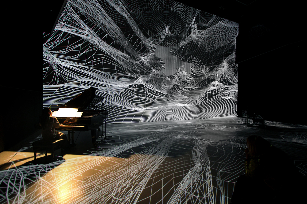 Deep Space Music brings together sound and image, music and computer animation in a way that transforms the projection space into a setting for intimate experiences. In it, Japanese pianist Maki Namekawa plays a program of works by three visionary composers who are also regarded as great thinkers. Her piano concert musically celebrates the 60th birthday of Ryuchi Sakamoto (JP) and Philip Glass’ (US) 75th, and commemorates the 100th anniversary of the birth of John Cage (US).